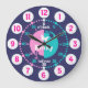 Colourful girls graphic wall clock colour coded to help assist your child to read a clock. This colourful teaching aid includes minutes and hours and past and to making child's play of telling the time. Clock colour coded in dark blue, pink, aqua and white featuring a little white butterfly and can be customised with your name of choice. Currently reads Emily. Designed exclusively by Sarah Trett. A great addition to a little girl's bedroom who is just learning to read a clock face.