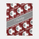 This fun soccer themed fleece blanket for girls features the realistic image of a soccer ball that has maroon, grey and white panels patterned at an angle with the sporty font text phrase "I LOVE SOCCER" in white that stretches between the angled rows of soccer balls - personalise her name in a sophisticated handwritten font on a similarly angled chunky grey colour strip - background is customisable maroon - by katz_d_zynes