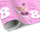 Birthday wrapping paper in a cute pink ballerina dancing girl polka dot and star design. Personalise this girlie birthday paper with your own name and age. Currently reads Happy Birthday Faith 8 today. Perfect for wrapping a special eighth birthday gift. Uniquely designed by Sarah Trett.