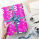 Pretty pink 8th birthday girls wrapping paper. Cute pink graphic ballerina girl dancing with flowers and stars design. Personalise this girlie birthday paper with your own name and age. Currently reads A Very Happy Birthday Abigail 8 today. Uniquely designed by Sarah Trett.