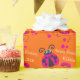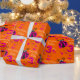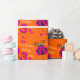 Birthday wrapping paper in a cute orange and pink girls flying ladybug / ladybird and hearts design. Personalise this girlie birthday paper with your own name and age. Currently reads Happy Birthday Karen 3 today. Uniquely designed by Sarah Trett.
