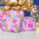 Girls name age rainbow birthday patterned wrap wrapping paper