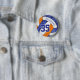 This team colours volleyball button features the realistic image of a stylised blue, orange & white volleyball that has an artsy floral kaleidoscopic pattern blended with its blue & orange panels - personalise with the athlete's name and jersey number - by katz_d_zynes