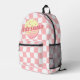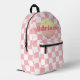 Another girly backpack by JessicaAmber - message me about custom orders! This fun all over print backpack features a pastel pink and white chequerboard design. The pattern has a wavy distortion to it, giving a fun and youthful vibe. The name at the top says 'Adriana' in a chunky retro font with a drop shadow - you can change this to your name. A great birthday gift for your teen daughter. ••• For more feminine backpacks, visit my store Zazzle.com/JessicaAmberArtist