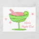 A fruity pink drink in a green shaded glass. A pink swirly straw and a lime wedge accent this cute girls night out invitation.