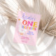 Celebrate your little one’s big day with this adorable and whimsical 1st birthday invitation! Featuring a playful silly goose and fun, colourful typography, this sweet design is perfect for a girl’s first birthday celebration. The back of the card is finished with a coordinating pink gingham pattern, adding a cute farm-inspired touch. A delightful choice for a barnyard-themed or farmhouse-style birthday party!