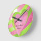 Girl's Pink and Green Striped Balloon Hearts Clock