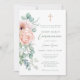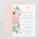Girl's Pink and Sage Green Floral First Communion Invitation