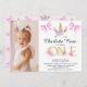 Girls Pink Bows Floral Unicorn 1st Birthday Invitation