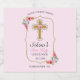 Celebrate your joy with family and friends as you offer wine at your daughter's First Holy Communion with these elegant Floral First Holy Communion sparkling wine Labels. These sparkling wine labels for a girl's holy communion feature a beautiful gold cross decorated with a pink and red roses. The modern and trendy text is surrounded by a gold frame with watercolor floral bouquets in two corners. The soft background on the front is a light blush pink. Personalise with the name of your child, the date of your event, and the type of sparkling wine and vintage year. So perfect for your guests at your daughter's First Holy Communion.