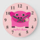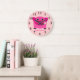 Girl's Pink Pig Wall Clock Personalised With Name