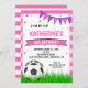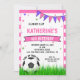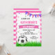 "Let's kick up some fun" with our Girls Pink Soccer Birthday Party Invitation Template! Perfect for a 10th birthday celebration, this pink invitation sets the stage for an exciting soccer party theme. Send out these personalised sports party invites in no time. Available as instant download or have them printed and sent to you. - order now! ©TKM Party Printables