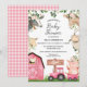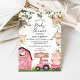 Girls Pink Tractor Barn Farm Baby Shower Invitation