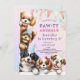 Girls Puppy Pawty Party 4th Birthday Invitation