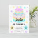 This girls' rainbow cake 6th birthday invitation features a stunning hand drawn two tiered rainbow icing birthday cake with white drip icing and sprinkles with confetti stars. On the back is a fun rainbow check pattern. This invitiation has a fun and playful pastel colour pallette ideal for a little girl's birthday party. Customise the text for your occassion. See the whole matching party collection.