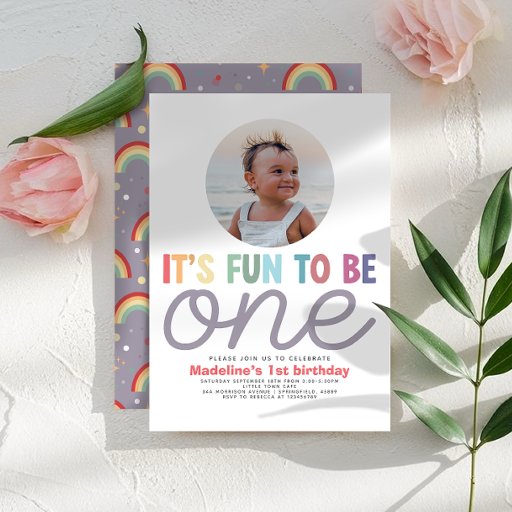 Girls Modern Minimalist Rainbow Fun 1st BirthdayDesigned by Aimee Marie Gray