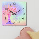 Girls Rainbow Name Square Wall Clock
