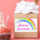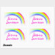 Ensure that your child do not lose their possessions by embellishing books, bags, bottles and toys with this simple personalised sticker. Bright and colourful it makes child's play of identifying all your children's belongings. Personalise with your full name. This example reads "Sienna Jamieson". Graphic designed by Sarah Trett.