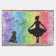 Girls Rainbow Watercolor Dancer and Dog Throw Blanket