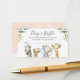 Sweet girl's safari animals baby shower diaper raffle card insert featuring four jungle animals, some pink floral arrangements and some foliage.