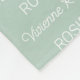 Cute, custom (personalised) blanket with a sage green background and white repeating names in modern, trendy fonts! Edit the name, colours and background colour easily.