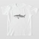 This shirt is perfect for any shark lover! It features an illustration of a cute cartoon shark. The shark is grey with a white belly.