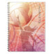 This beach volleyball themed spiral notebook for her features the colourful blended composite image of a silhouetted female volleyball player with long hair jumping at the net with right arm outstretched, a vibrant sunset ombre colour theme, and oversized volleyballs, one in the foreground and one in the background - customise with her name - by katz_d_zynes