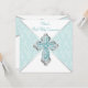 Girl's teal blue First Communion invitation with elegant teal blue and silver diamond cross on a beautiful silver and teal blue lace background. You can easily customise this pretty teal blue First Communion invitation by adding your event details in the font size & colour, and wording of your choice.
