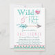 Girls tribal baby shower invitation with pastel pink and teal blue southwestern Aztec design background with stylish Wild and Free script with pretty heart and arrow. You can easily customise this adorable boho Wild and Free tribal baby shower invitation for your event by simply adding your details. You can also add a background colour and remove or move the heart from the back.