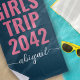 Girls' Trip 2024 Blue Pink Calligraphy Monogram Beach Towel