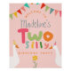 This cute and whimsical girls 2nd birthday welcome sign design features two silly geese with party hats, and can be personalised with a your girls name. The poster also features a pink background, and colourful party bunting. The perfect farm design for your little one's second birthday!