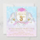 Girl's unicorn birthday party invitation with pretty pastel unicorns and flowers on a beautiful pink and teal blue sparkle background. These girls 3rd birthday party invitations are easily customised for your event by simply adding your event details. This is a printed design with no glitter, etc.