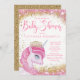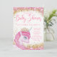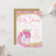 Girls unicorn baby shower invitations with adorable pink princess unicorn on a beautiful pink and gold background. These cute unicorn baby shower invitations are easily customised for your event by simply adding your event details. This is a printed design with no real glitter, jewels, etc.