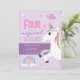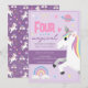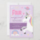 Girls Unicorn Four Ever Magical 4th Birthday Invitation