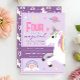 Cute girly unicorn 4th birthday invitation featuring a magical unicorn with a rainbow, princess crown, planet, hearts and stars in a whimsical purple design. Perfect for a girls unicorn birthday party, rainbow unicorn party, or four ever magical birthday theme. This purple unicorn invite for girls can be easily personalised with your child’s name, age and party details. Ideal for celebrating a 4th birthday girl who loves unicorns, magic and fairytale themes.