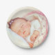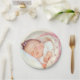 Girls vintage baby shower paper plates with adorable sleeping baby girl wrapped in soft pink and floral blankets on a soft vintage background. You can add text in the fonts style of your choice to personalise these sweet vintage baby shower paper plates.
