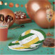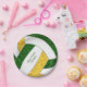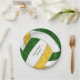 These girls' volleyball birthday party 7" paper plates feature a girly green , gold and white volleyball graphic with customisable "Happy Birthday" greeting and girl's name - the green and gold panels of the volleyball are blended with a pretty floral kaleidoscopic pattern, and the white volleyball panels are blended with an abstract swirl pattern for a textured appearance that is artsy and girly - by katz_d_zynes