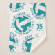 This fun volleyball themed sherpa fleece blanket features 5 randomly arranged teal and white volleyballs with the text, "The volleyball court is my happy place" in grey encircling each volleyball in a playful typographic font, all on a white background - her name and jersey number are customisable - by katz_d_zynes