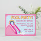This cute pool party birthday invitation features a a big water slide on a brightly coloured card and customisable text fields for your party information.