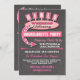 Girls Weekend getaway itinerary Invitations Super cute and cool these invitations feature a retro sign to welcome your friends to a Bachelorette Party for the weekend and the back holds all the details of the fun events. Chalkboard background and pink and blush colour palate. Hand drawn illustration by McBooboo