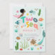 This cute girls’ 2nd birthday invitation features a colourful mermaid under-the-sea illustration with fish, seaweed, bubbles, and a sweet crab. The back showcases a matching magical mermaid pattern, with space to add your party details in elegant script typography. A perfect choice for a whimsical mermaid lover and ideal for a “Two the Sea” second birthday or under-the-sea themed celebration.