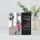 Elegant chandelier and hot pink party dress mod girl with cat high fashion any number birthday party invitation. This fun and elegant design works well for a woman or teenager birthday party.