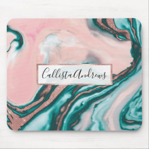 Monogram Name Pastel Pink Gold Black Minimalist Mouse Pad