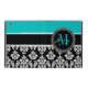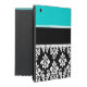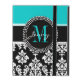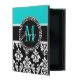 Girly Aqua Black Damask Your Monogram Name iPad Case