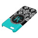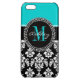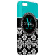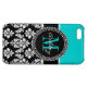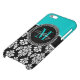 Girly Aqua Black Damask Your Monogram Name iPhone Case