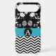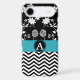 Girly Aqua Black & White Chevron Monogram Name Case-Mate iPhone Case