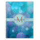 Girly Aqua Blue Bokeh Gold Glitter Monogram Name Notebook