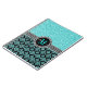 Chic, girly aqua blue glitter and diamond sparkles damask pattern elegant glamour design template so you can personalise with your name and monogram initial in an aqua blue font colour and name in a white hand lettered script font. Elke Clarke © Faux diamond and glitter background - photo effect. The font colours can be customised by clicking on the "Customise it" button for the edit menu. Perfect monogrammed gift for a stylish girly girl.