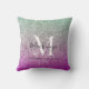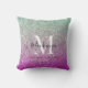 Girly Aqua Blue Pink Ombre Glitter Monogram Name Throw Pillow