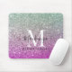 Girly Aqua Blue Pink Ombre Glitter Monogram Name Mouse Pad